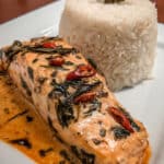 This Coconut Curry Salmon with Garlic Butter offers a rich blend of Thai spices, creamy coconut milk, and crispy broiled salmon—all elevated by aromatic chili garlic butter. Simple enough for weeknights yet impressive for entertaining, it’s a flavorful, comforting dish that brings warmth and depth to the table.