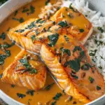 A fragrant, creamy, and flavorful dish that brings together tender salmon fillets simmered in a rich coconut curry sauce, perfectly paired with fluffy jasmine rice. This recipe combines the warmth of Thai-inspired spices with the freshness of lime and cilantro, creating a comforting yet vibrant meal for any occasion.