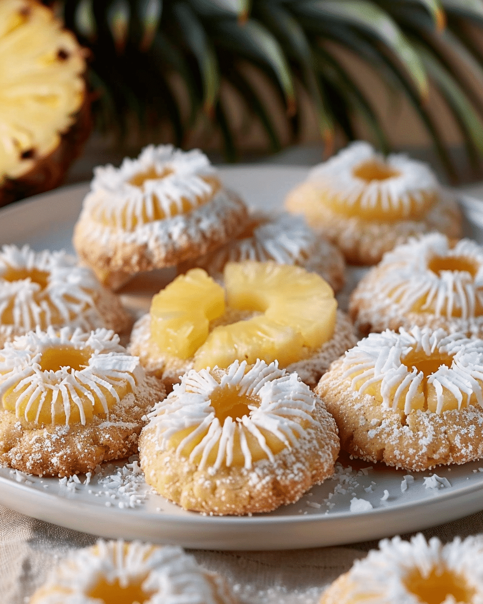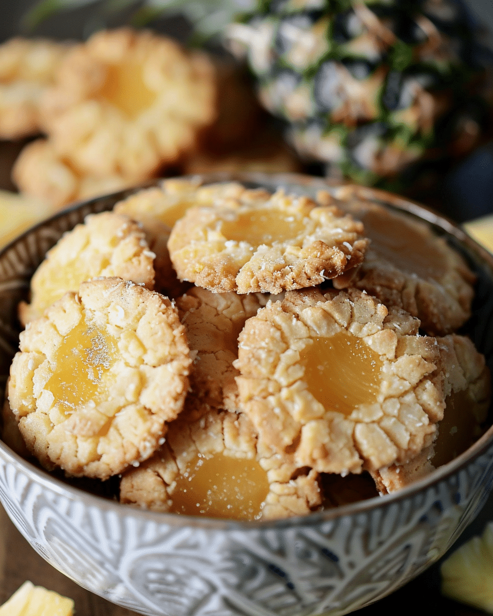 These Coconut Pineapple Thumbprint Cookies are soft, buttery cookies with a tropical twist, featuring a sweet pineapple filling and coconut-rich dough. Perfect for holidays or anytime you crave a bright, tropical treat.