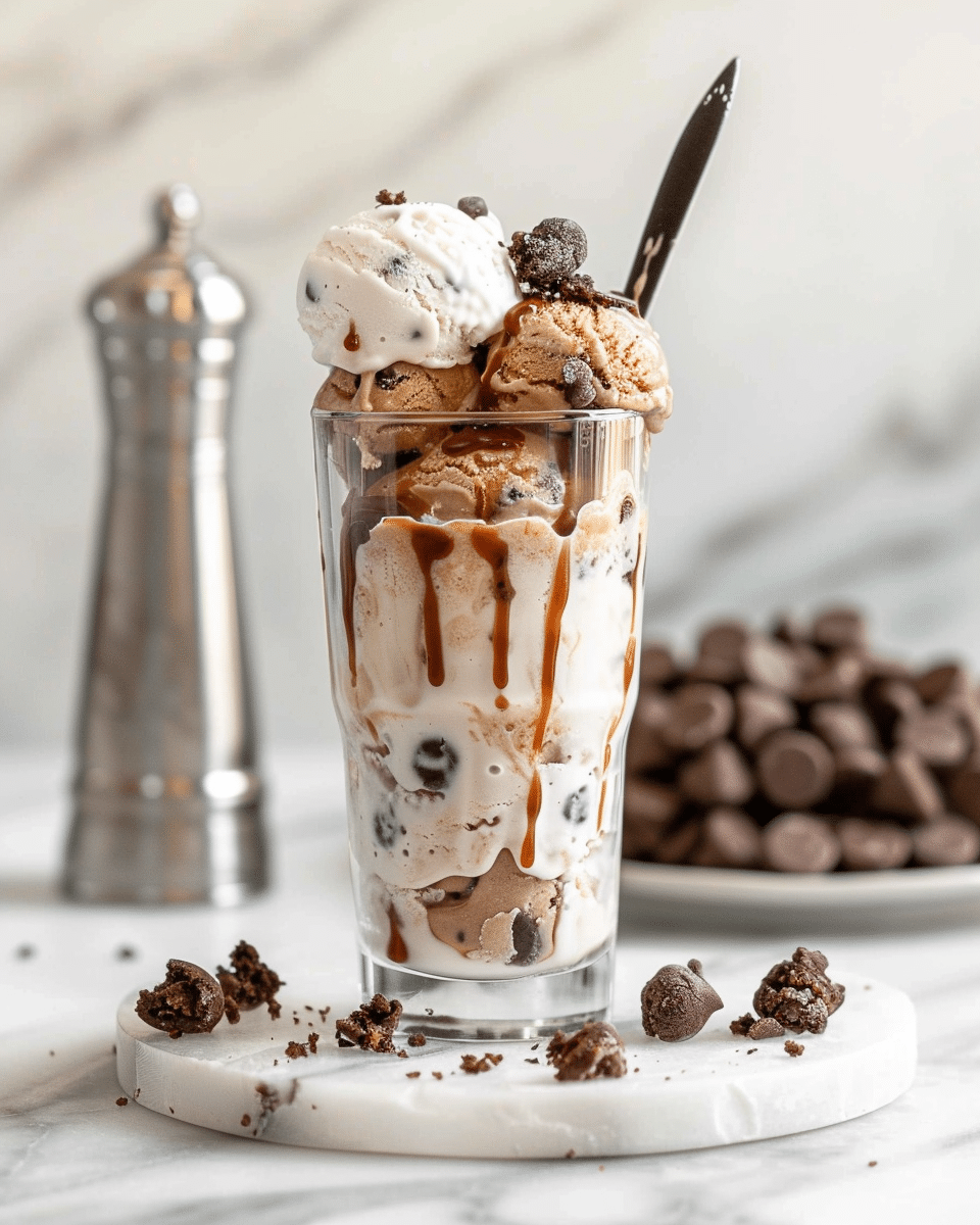 This recipe blends indulgence with better-for-you ingredients, creating a dessert that feels luxurious without being overly heavy. The base is silky and lightly tangy from cottage cheese, the maple syrup adds natural sweetness, and the cookie dough bits taste just like classic chocolate chip cookie dough. It comes together quickly and freezes beautifully, making it perfect for meal prep or a healthier after-dinner treat.