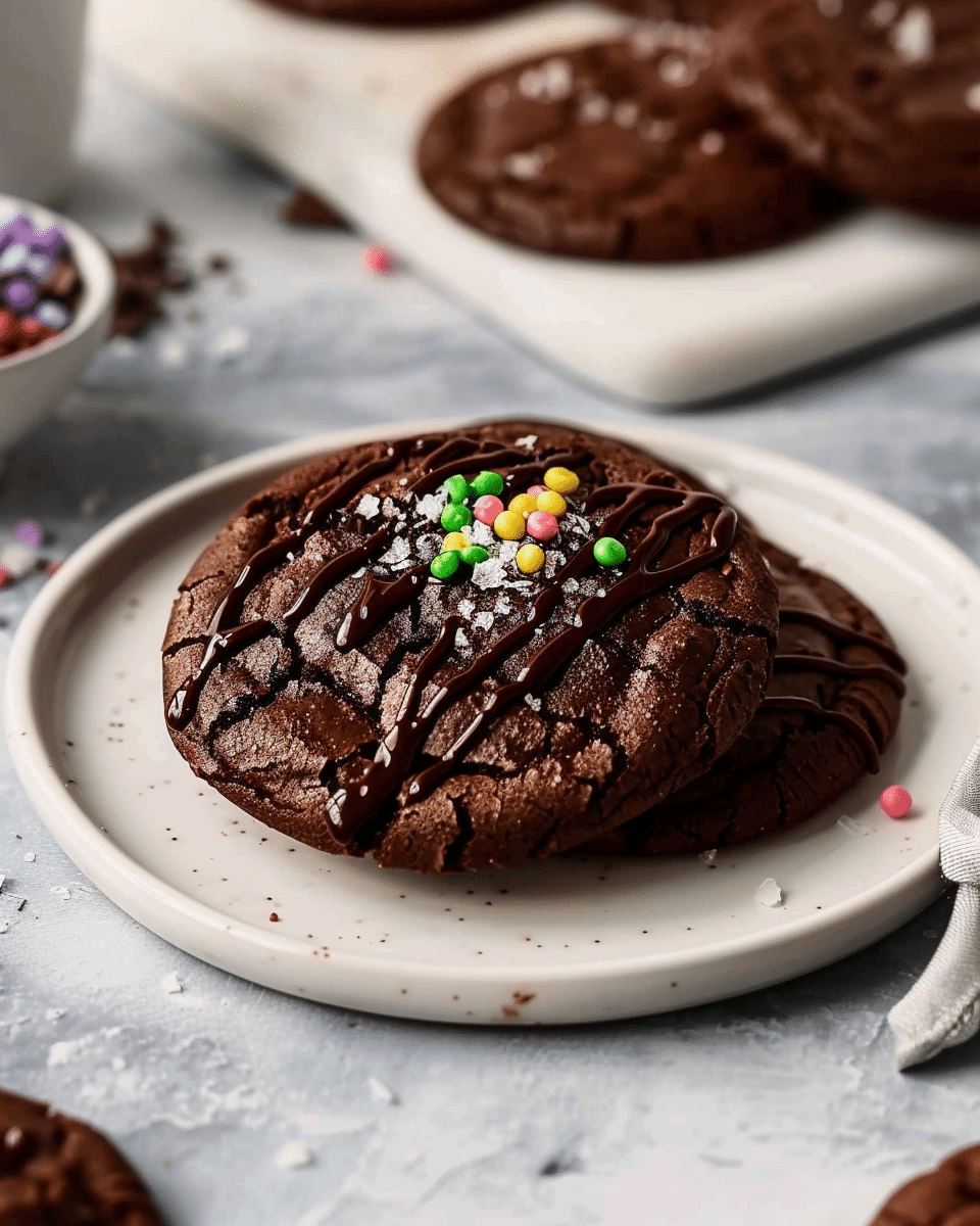 These cookies bring the best of both worlds—cookies and brownies—into one decadent dessert. You’ll love them for their soft, fudgy centers and rich chocolate flavor, balanced with a smooth ganache topping and cheerful sprinkles. Whether you’re making them for a party, bake sale, or just a cozy night in, these cookies are fun, festive, and undeniably delicious.