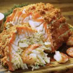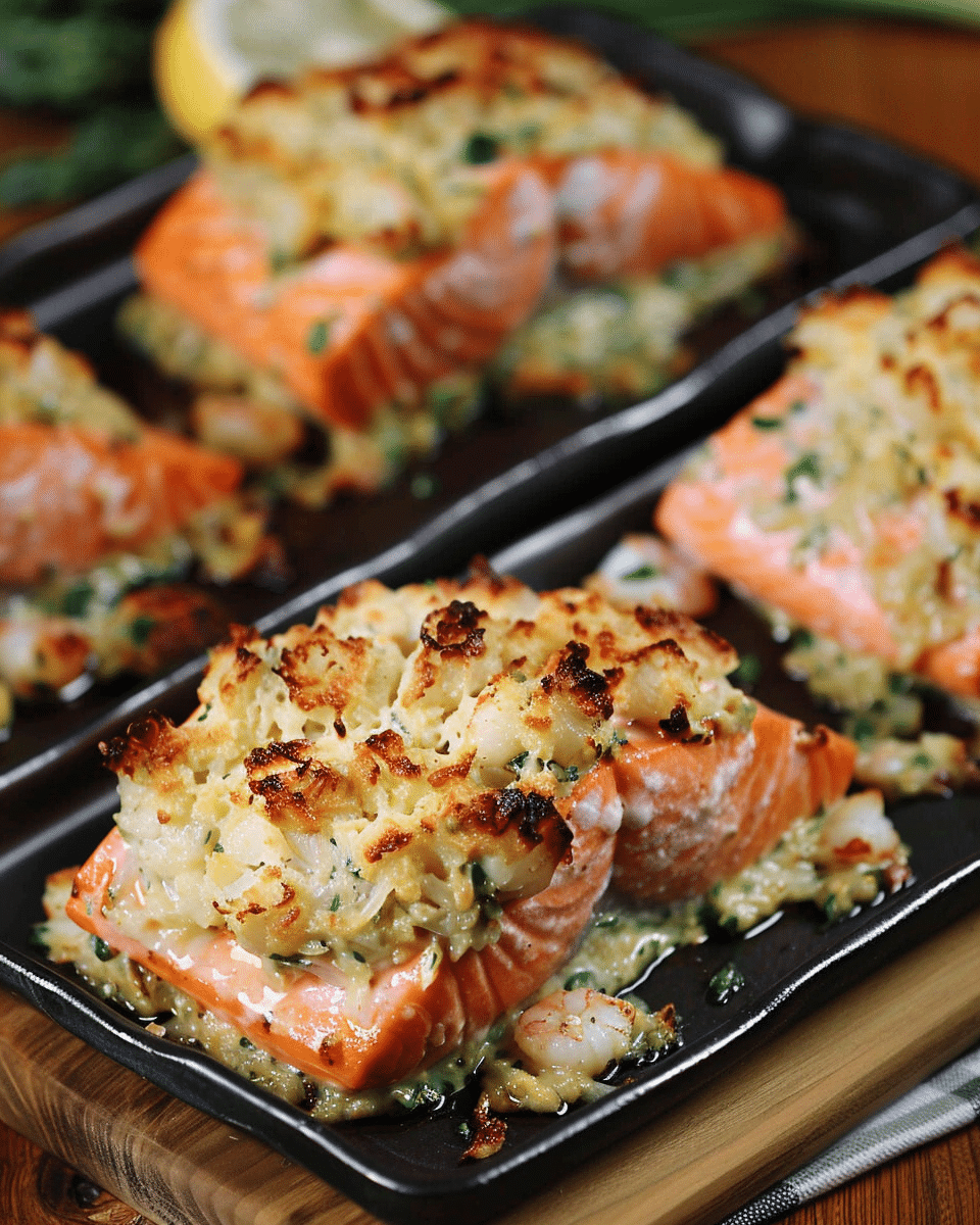 Crab And Shrimp Stuffed Salmon is a rich, elegant seafood dish featuring wild-caught salmon fillets stuffed with a creamy, herbed blend of jumbo lump crab, sautéed shrimp, and cheeses. It’s perfect for special occasions or a luxurious weeknight dinner.