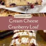 A soft and rich cream cheese cranberry loaf with a tender crumb and bursts of tart cranberries in every slice. Perfect for breakfast, snacks, or a simple dessert.