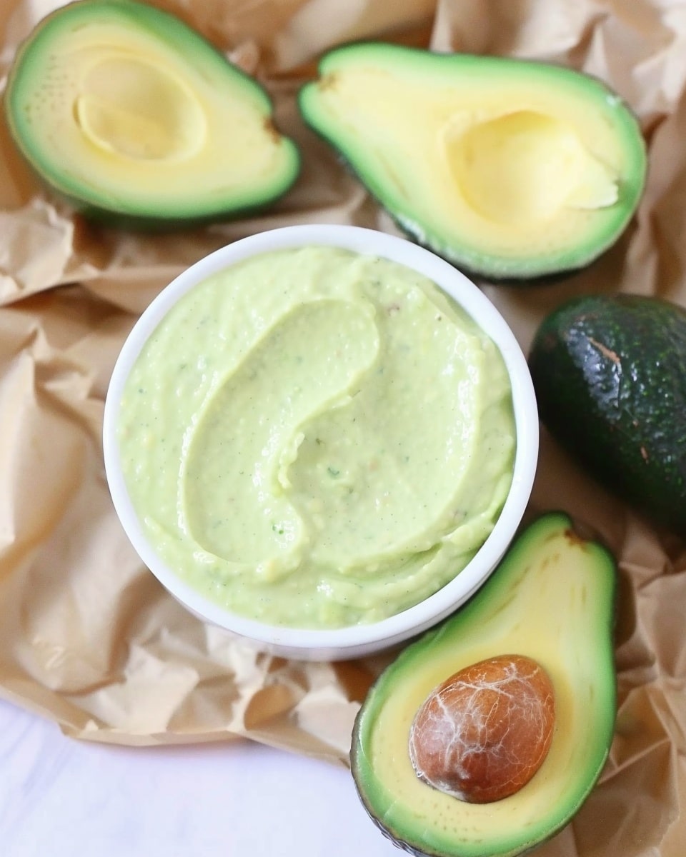 Start by cutting the avocados in half, removing the pits, and scooping the flesh into a mixing bowl or food processor. Make sure the avocados are fully ripe for the best creamy texture and flavor.