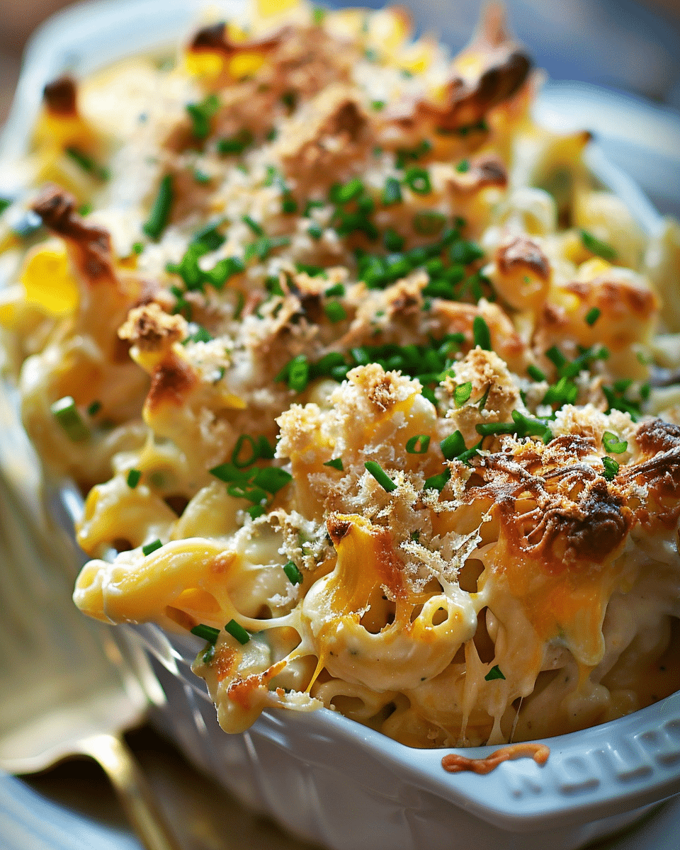 A comforting, cheesy baked macaroni and cheese loaded with tender vegetables. This creamy, golden‑topped dish brings together gooey cheese sauce and veggies in a hearty, satisfying one‑dish meal.