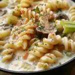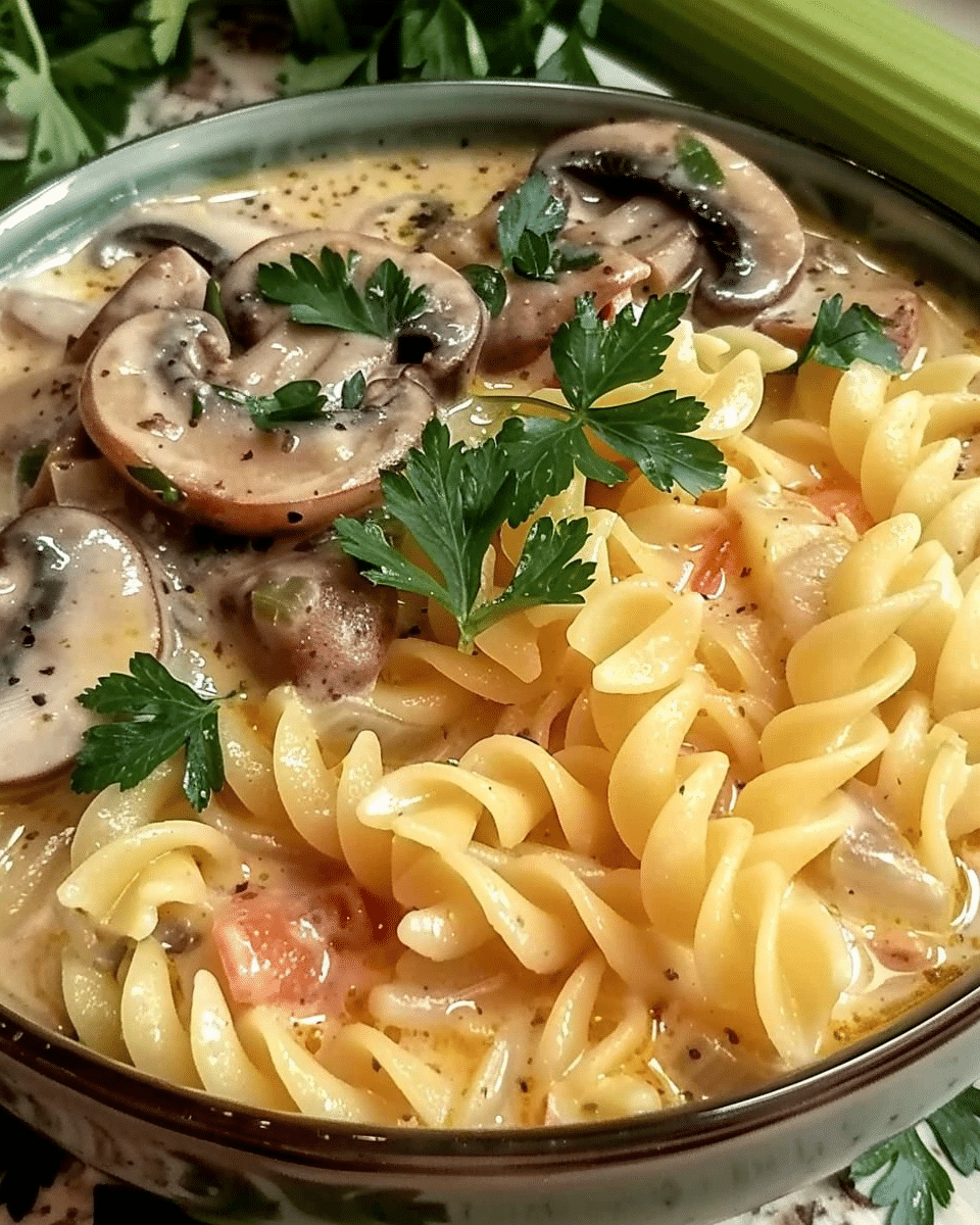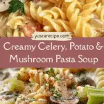 A rich and creamy soup featuring celery, potatoes, mushrooms, and pasta in a savory broth. This comforting dish is perfect for cozy nights and easy weeknight meals.