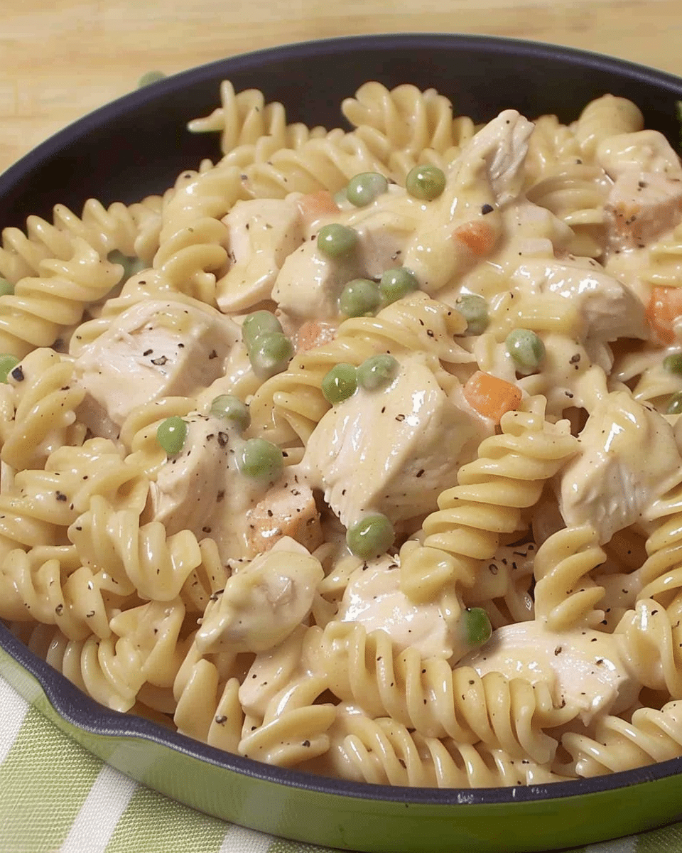 A one-skillet comfort food classic that combines tender chicken, egg noodles, veggies, and a rich creamy sauce—bringing all the cozy flavors of chicken pot pie without the crust or the hassle.