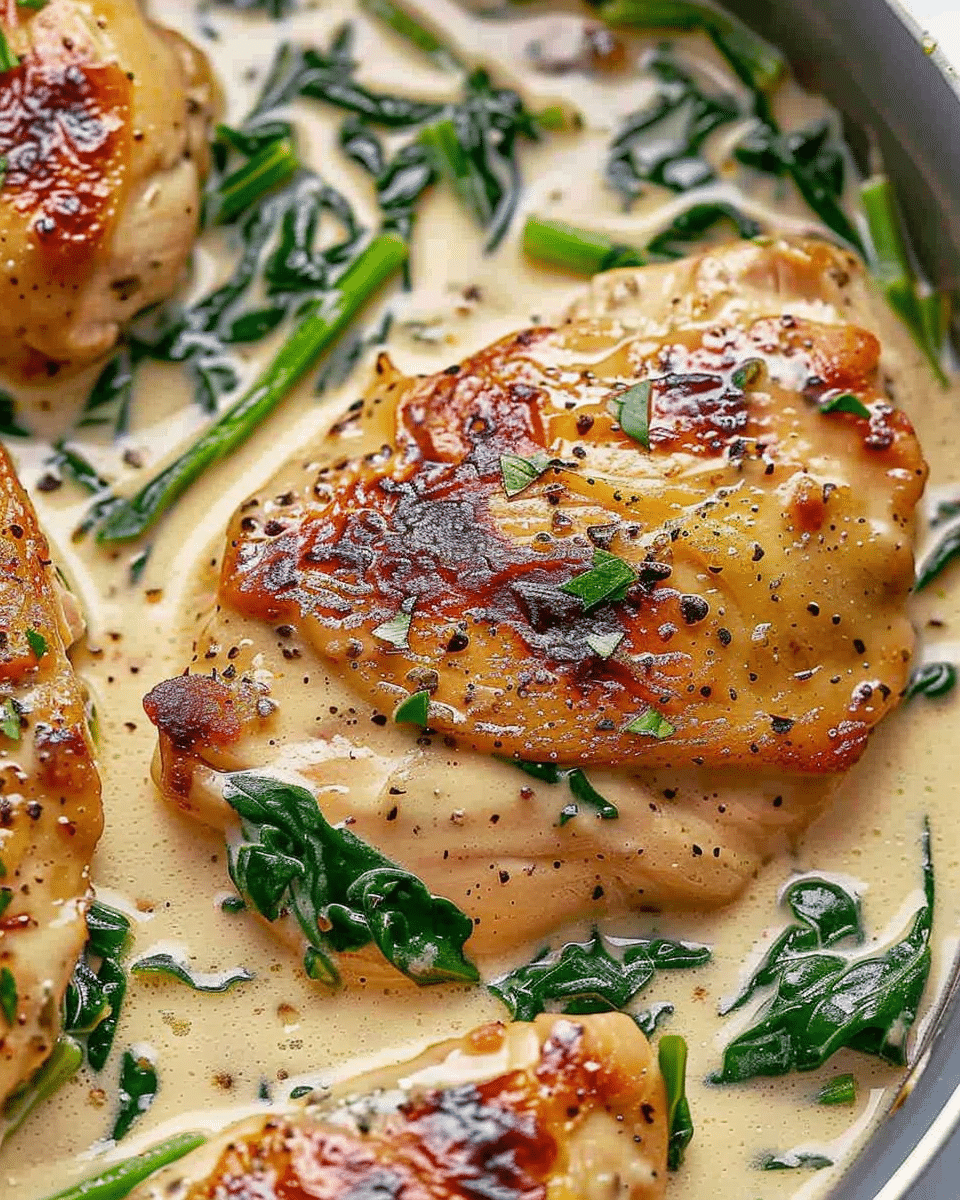 A creamy, garlicky one-pan chicken dinner featuring tender cutlets, fresh spinach, and a rich cheese-infused sauce—all ready in about 30 minutes with minimal cleanup.