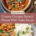 Creamy chickpea spinach masala with tadka is the kind of meal that feels both nourishing and special. The creamy sauce, earthy chickpeas, tender spinach, and sizzling spiced topping come together in a way that is simple but full of character. Whether you serve it for a quick dinner or make it ahead for the week, it is a comforting recipe that delivers big flavor with very little fuss.