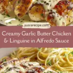 Creamy garlic butter chicken and linguine in Alfredo sauce is the perfect blend of comfort and indulgence. With tender chicken, rich sauce, and perfectly cooked pasta, this dish is sure to become a favorite in your kitchen. It’s simple enough for busy nights yet impressive enough to serve guests with confidence.