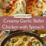 Creamy Garlic Skillet Chicken with Spinach is the kind of easy, comforting dinner that feels like a treat but fits perfectly into a busy weeknight. With tender chicken, a rich garlic-Parmesan sauce, and spinach folded right in, it’s simple, satisfying, and ready to make a repeat appearance in your kitchen.