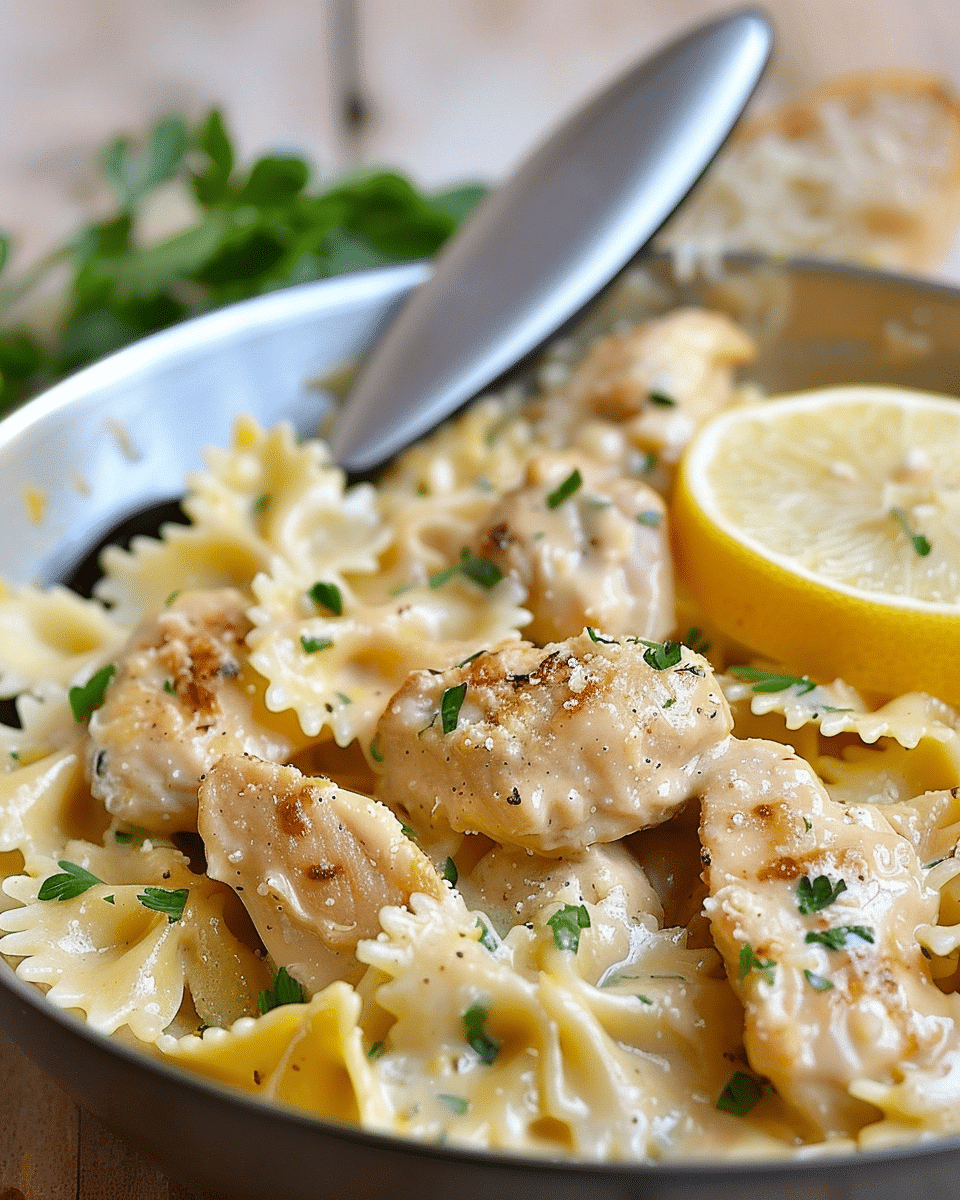 Creamy Lemon Chicken Bowties is a comforting pasta dish combining tender seasoned chicken, bowtie pasta, and a bright, rich lemon-garlic cream sauce. It’s elegant enough for entertaining yet simple for a weeknight meal.