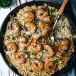 I love how this dish combines creamy pasta comfort with fresh seafood and bright lemon. It comes together quickly and requires minimal effort, yet the flavors are layered and satisfying. The one-pot approach means fewer dishes and more convenience, and the combination of textures – tender orzo, juicy prawns, wilted spinach, and melted Parmesan – keeps each bite interesting. Whether I’m cooking for myself, my family, or a guest, this is a reliable favorite that never disappoints.