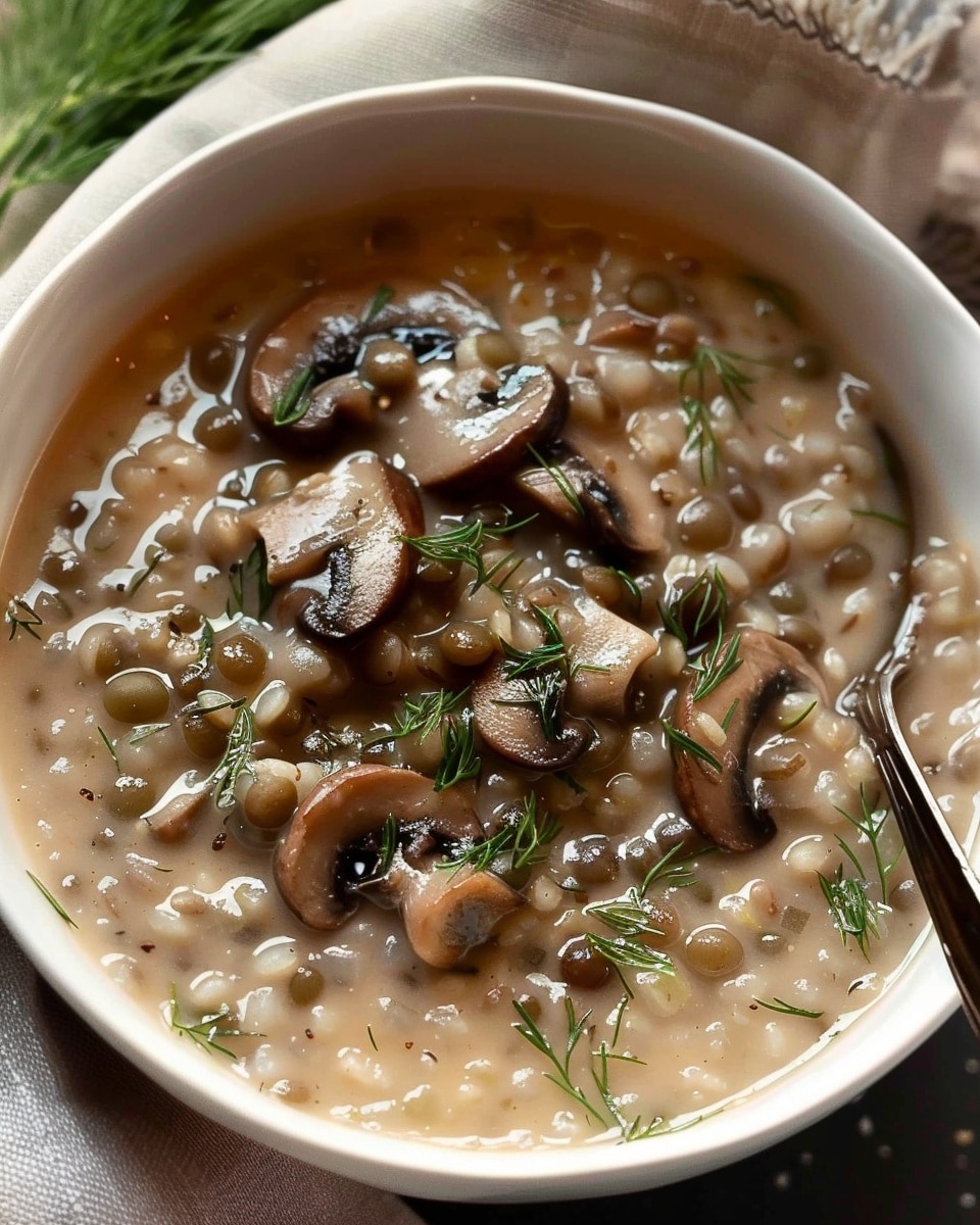 This comforting, hearty soup brings together earthy mushrooms, tender barley, and protein-rich lentils in a creamy, herb-infused broth. It’s a nourishing bowl that feels both rustic and satisfying, perfect for cooler days or whenever you want something wholesome and filling.