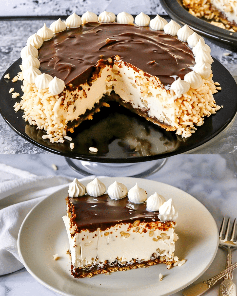 Light, crispy, and creamy — this no-bake cake combines the airy crunch of puffed rice with a smooth, velvety cream layer, all topped with a glossy chocolate finish. It’s a delightful treat that’s easy to prepare and perfect for any occasion.
