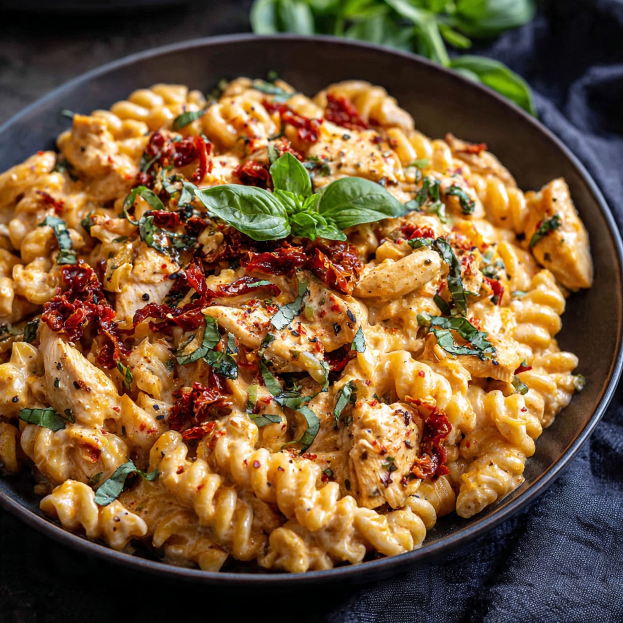 This creamy sun-dried tomato chicken pasta is a comforting, one-pot meal that feels both cozy and elegant. Tender chicken, al dente pasta, and a rich, savory cream sauce come together with sun-dried tomatoes and spinach for a dish that’s full of bold, Tuscan-inspired flavor. It’s perfect for busy weeknights, yet impressive enough for sharing with family or guests.