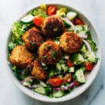 These crispy baked falafel are golden outside, tender and herb-packed inside. Made with soaked chickpeas, fresh herbs, and spices, they’re oven-baked for a lighter take on classic Middle Eastern falafel without sacrificing flavor or texture.