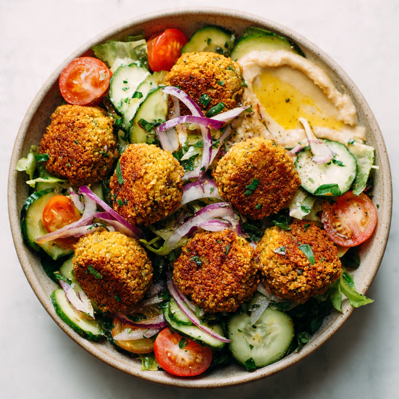 Golden on the outside, tender and herb-packed on the inside, these crispy baked falafel are proof that you can enjoy bold Middle Eastern flavors without deep frying. Made from soaked dried chickpeas, fresh herbs, and warm spices, this recipe delivers authentic texture and taste while keeping things lighter and simple. Perfect for salads, wraps, or mezze-style plates, this is a dependable homemade falafel you’ll want to make again and again.