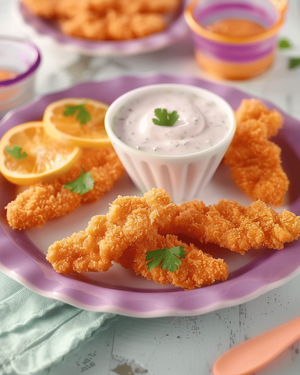 Store leftover chicken tenders in an airtight container in the refrigerator for up to 3 days. Reheat in the oven at 375°F for 8–10 minutes to maintain crispiness. The ranch dip can be stored separately in the fridge for up to 3 days. Avoid microwaving the tenders, as it may make the coating soggy.