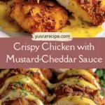 Crispy Chicken with Mustard-Cheddar Sauce is a hearty, oven-baked dish featuring pretzel-crusted chicken breasts topped with a rich, cheesy mustard sauce. It offers a perfect combination of crunch, creaminess, and tang, ideal for family dinners or casual gatherings.