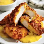 This crispy chicken with mustard-cheddar sauce is a comforting, family-friendly dish that combines crunchy pretzel-coated chicken with a rich, creamy sauce. It’s the perfect balance of savory, tangy, and cheesy flavors, ideal for weeknight dinners or casual gatherings.
