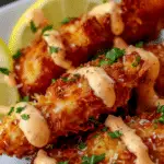 You’ll love this recipe because it delivers maximum crunch without deep frying. The combination of shredded coconut and crushed cornflakes creates a golden, flavorful crust that bakes or air-fries beautifully. The Bang Bang sauce adds the perfect balance of sweetness, creaminess, and gentle heat, making this dish great for family dinners, gatherings, or meal prep.