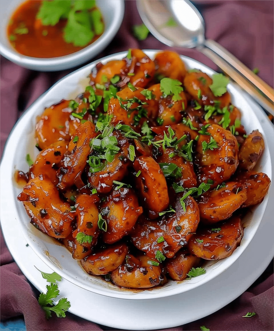 You’ll love this recipe for its incredible texture and flavor combination. The potatoes are coated and fried until perfectly crisp, then tossed in a sticky, tangy, and spicy honey chili sauce. It’s easy to prepare, uses simple ingredients, and is a crowd-pleaser that even picky eaters adore.