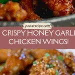 For a spicy version, add 1 to 2 teaspoons of chili sauce or a pinch of red pepper flakes to the honey garlic glaze. If you want a deeper savory flavor, add a small splash of toasted sesame oil to the sauce right before tossing. You can also make these wings in the air fryer at 400°F, cooking in batches for about 18 to 22 minutes and turning halfway through.