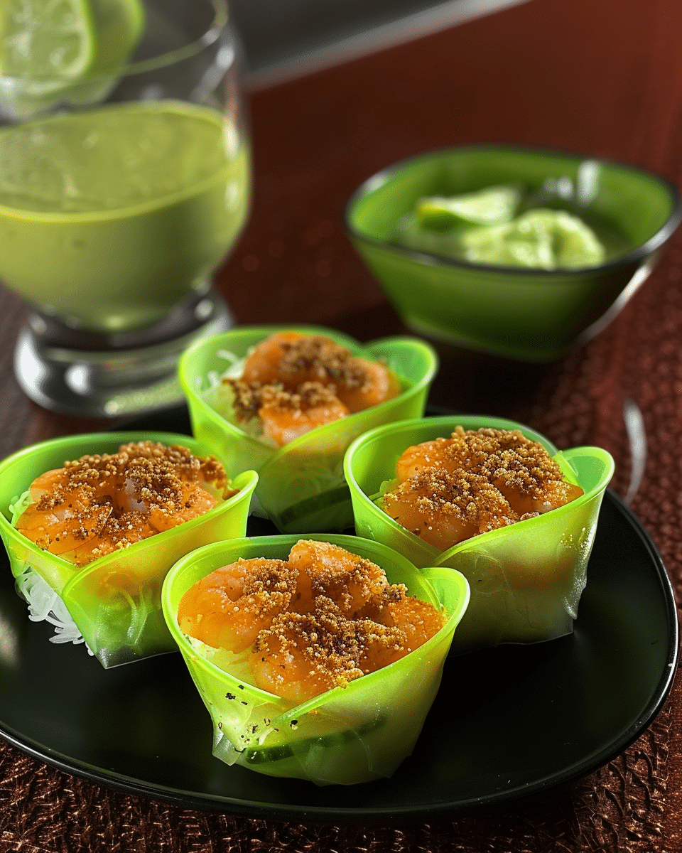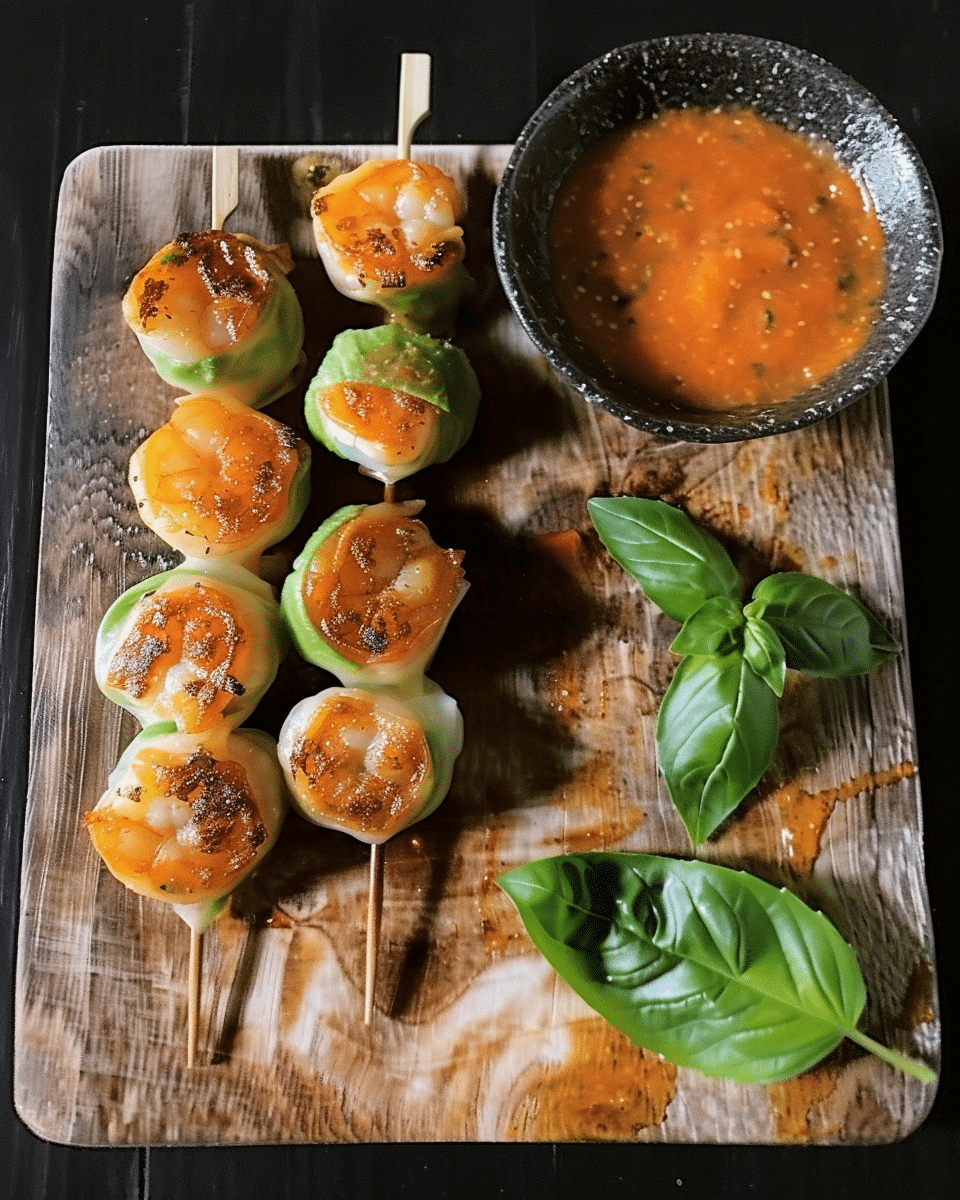 These crispy shrimp rice paper bites are a crunchy, savory snack filled with marinated shrimp and creamy avocado, served with a sweet chili mayo dipping sauce. Perfect as an appetizer or quick snack.