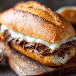 These Crockpot French Dip Sandwiches feature tender, slow-cooked beef infused with savory broth and served on hoagie rolls with optional melted provolone cheese. Dipped in rich au jus, each bite is hearty, comforting, and packed with flavor—perfect for easy weeknight dinners or casual gatherings.