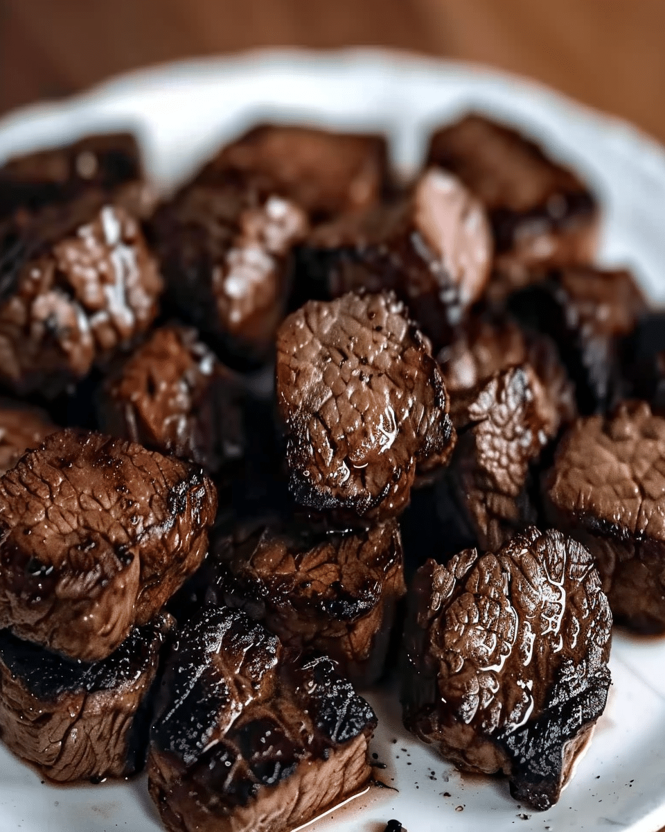 For an herby finish, sprinkle freshly chopped parsley over the steak bites before serving.