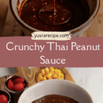 This Crunchy Thai Peanut Sauce is rich, creamy, and packed with bold Thai-inspired flavors. Made with crunchy peanut butter, garlic, ginger, honey, and chili garlic sauce, it’s the perfect no-cook condiment for dipping, dressing, or drizzling.
