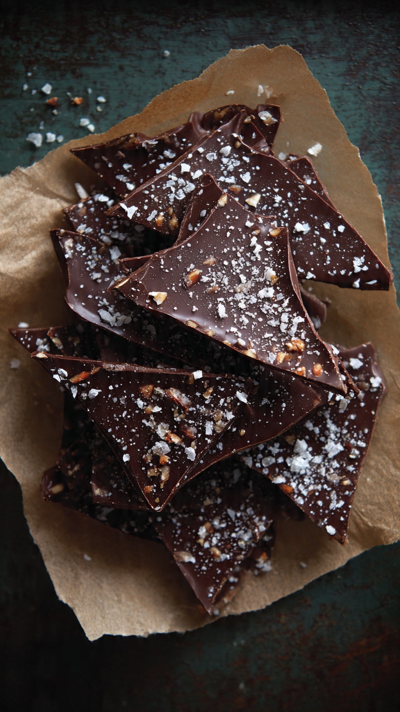 Remove from freezer, sprinkle with flaky sea salt, and cut into pieces.