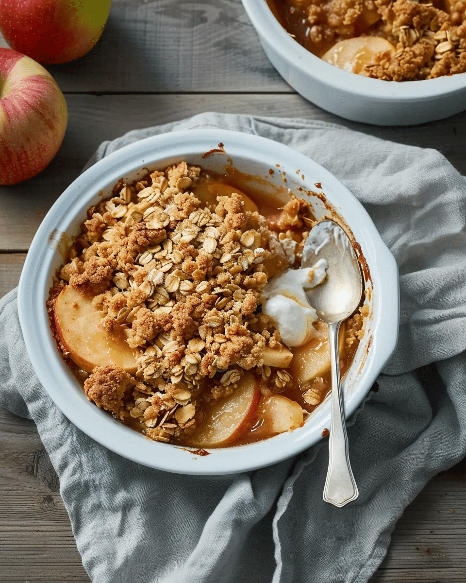 I like this recipe because it’s simple but feels special. The topping has just the right balance of oats, butter, and brown sugar, giving it a comforting crunch over sweet, spiced apples. I don’t need fancy equipment, just a few bowls and a baking dish. I can also make it ahead of time, reheat it later, and it still tastes incredible. Best of all, I can serve it plain, with whipped cream, or topped with vanilla ice cream for an extra treat.
