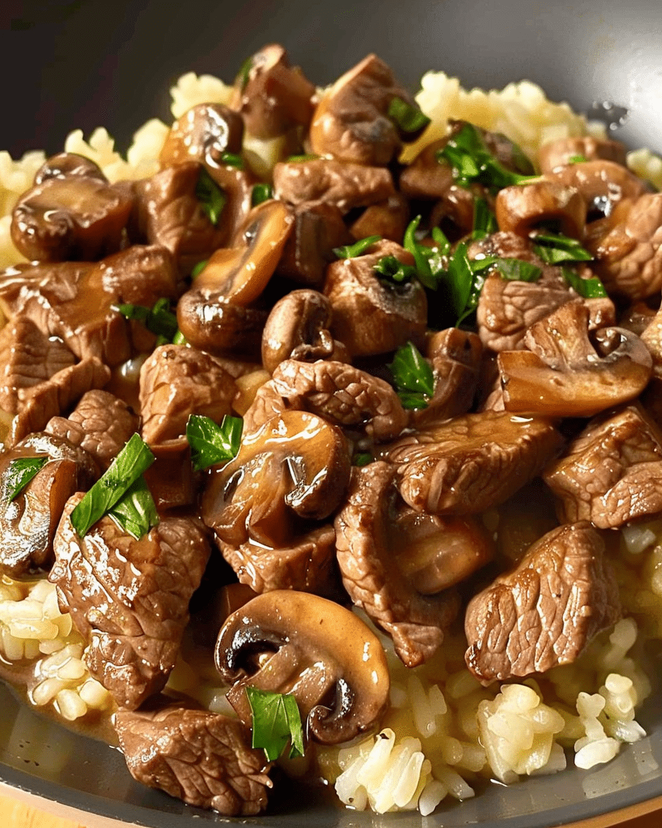 A rich and comforting beef dish featuring tender pieces of sirloin simmered with mushrooms and aromatics in a savory, velvety sauce. This recipe comes together quickly, making it perfect for weeknights while still feeling cozy and satisfying.