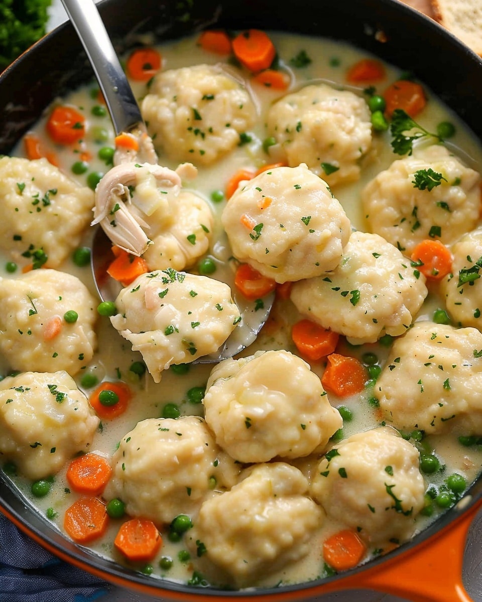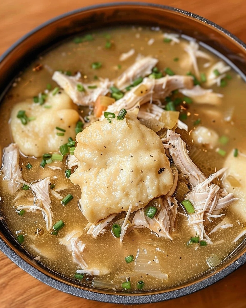 This recipe stands out because it’s made entirely from scratch while still being simple enough for a weeknight meal. The dumplings are soft and biscuit-like, soaking up the flavorful broth as they cook. It’s also highly flexible—you can swap vegetables, use leftover chicken, or adjust the seasoning to your taste. The creamy texture and savory aroma make it a true comfort food classic that the whole family will enjoy.