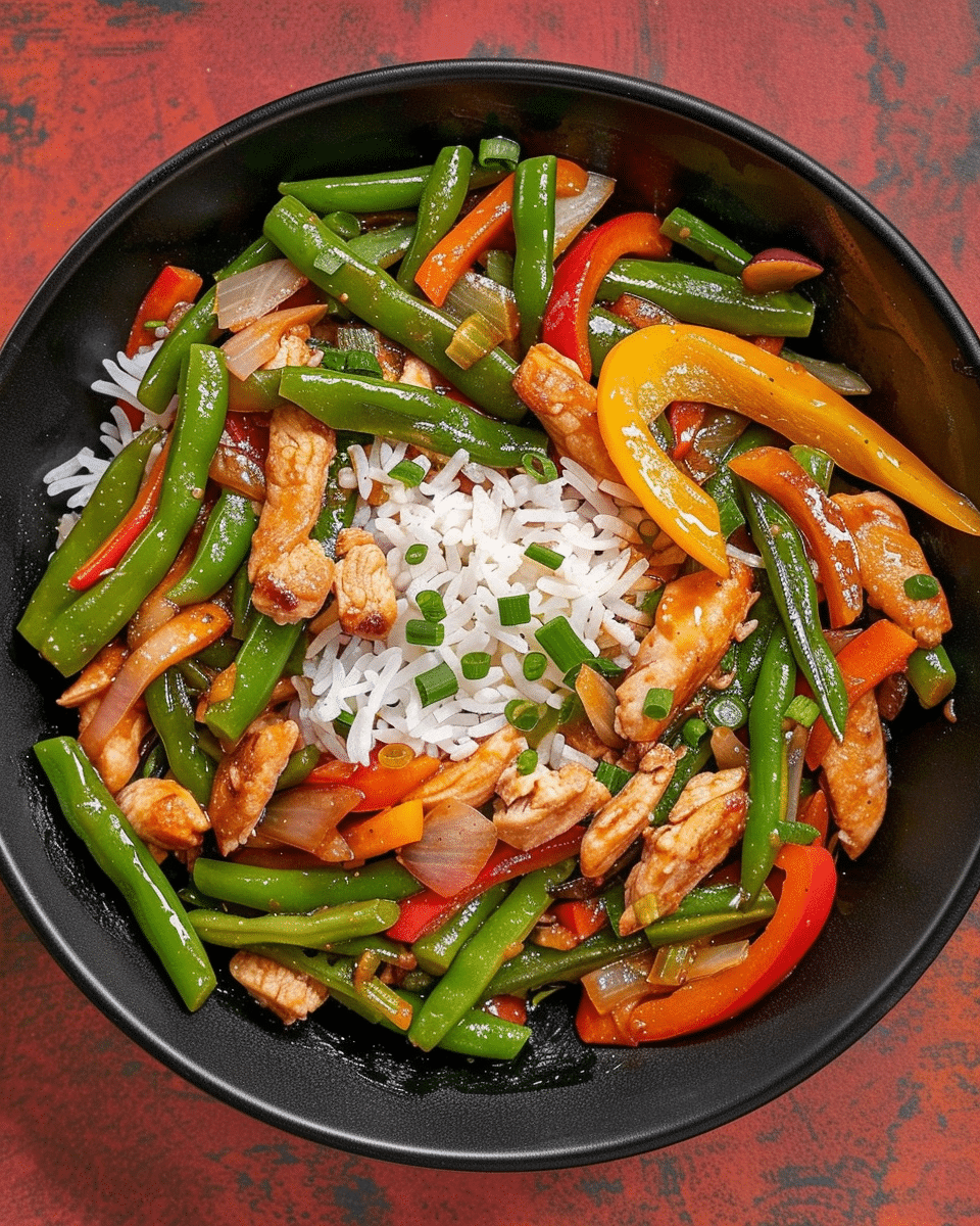 This easy chicken and green bean stir fry is a quick, flavorful one-pan meal featuring tender chicken, crisp green beans, colorful peppers, and a savory homemade sauce. Perfect for weeknights and meal prep.