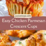 These handheld Chicken Parmesan Crescent Cups are filled with saucy chicken, gooey mozzarella, and buttery crescent dough. Quick, cheesy, and perfect for family dinners, snacks, or party appetizers.