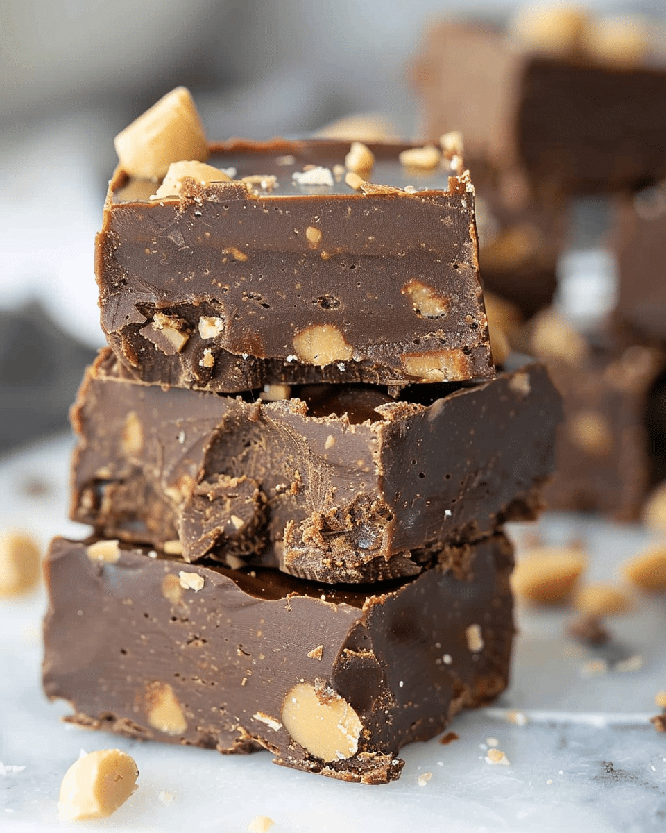 Crunch Lovers: I fold ½–1 cup chopped roasted peanuts into the fudge before spreading to add crunch throughout.