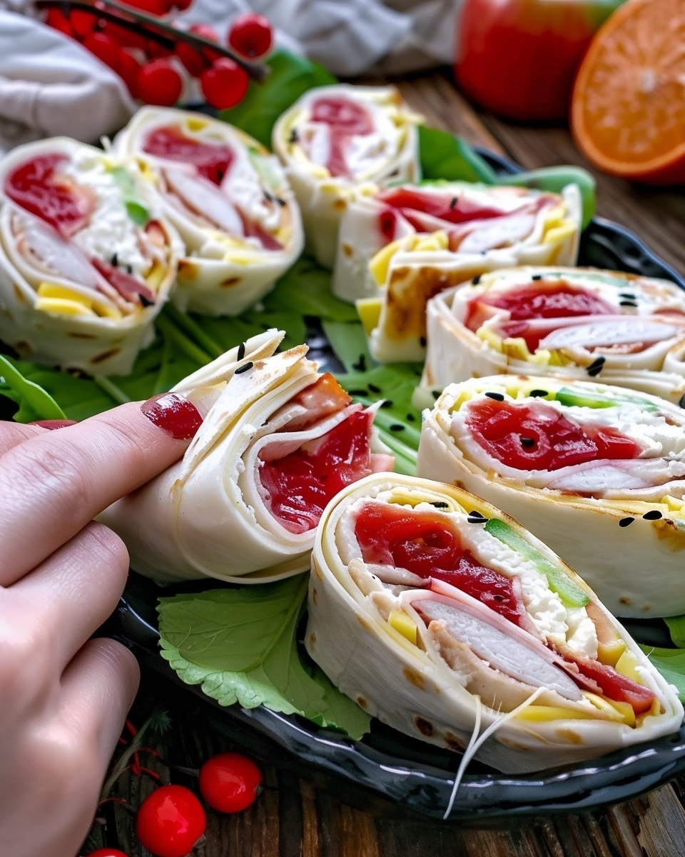 Popular fillings include scrambled eggs, grilled chicken, turkey, cucumbers, lettuce, tomatoes, avocado, cheese, and labneh.