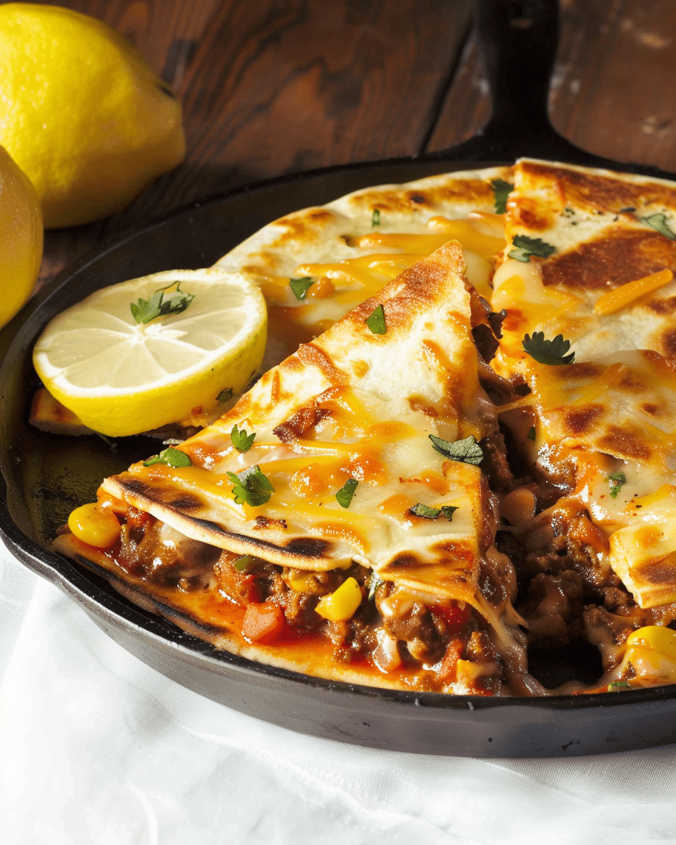 These easy Mexican-style beef quesadillas are loaded with seasoned ground beef, melty cheese, and crispy golden tortillas. A quick, satisfying meal perfect for busy weeknights or casual entertaining.