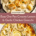 A creamy, flavorful one-pan dinner featuring juicy chicken, pillowy gnocchi, and a bright lemon-garlic sauce. This easy dish cooks in a single skillet, perfect for busy weeknights or casual entertaining.