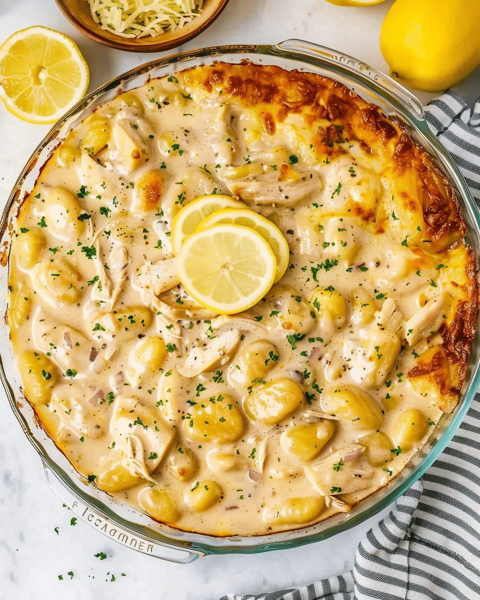 This dish offers everything you want in a cozy yet vibrant dinner—juicy chicken, fluffy gnocchi, and a creamy lemon-garlic sauce that clings to every bite. The gnocchi cooks directly in the sauce, so there’s no need for extra pots or boiling. With minimal cleanup and maximum flavor, it’s a go-to recipe for busy nights or casual entertaining.