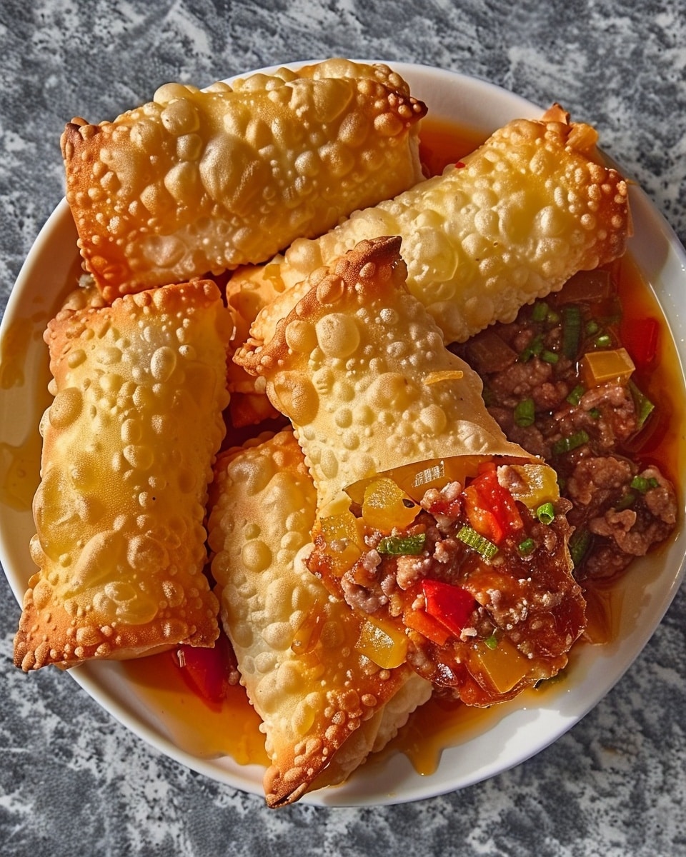 These crispy egg rolls bring together the rich, savory taste of a classic Philly-style cheesesteak in a handheld appetizer or quick meal. Tender beef, sautéed onions and peppers, and melted cheese are wrapped in egg roll wrappers and cooked until golden and crunchy. They are satisfying, easy to share, and packed with bold flavor in every bite.