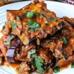 Mesaqa’a is the Arabic name for this Egyptian eggplant dish. The word refers to a layered vegetable preparation baked in tomato sauce.