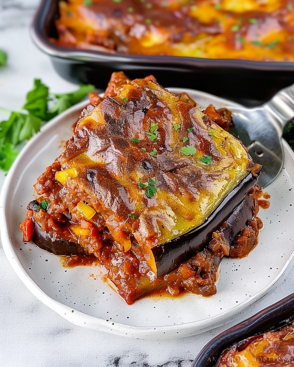 Egyptian vegan mesaqa’a is a timeless dish that transforms simple ingredients into something deeply flavorful and comforting. With its tender roasted eggplant, boldly spiced tomato sauce, and flexible serving options, it’s a recipe that fits effortlessly into everyday meals or special gatherings. Whether enjoyed warm from the oven or cold the next day, this classic Egyptian favorite delivers rich, satisfying flavor in every bite.
