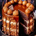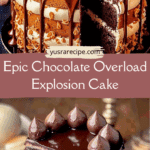 The Epic Chocolate Overload Explosion Cake is a rich, moist triple-layer chocolate cake drenched in glossy ganache and piled high with assorted chocolates. It’s a dramatic, indulgent dessert perfect for chocolate lovers and special celebrations.