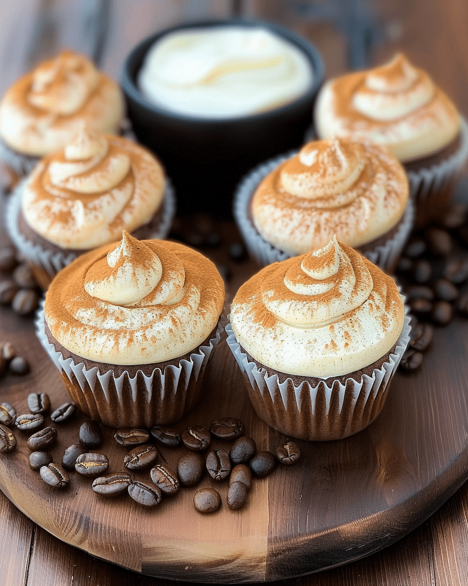 These Espresso Cream Cheese Frosted Mocha Cupcakes feature rich chocolate-mocha cakes with a hidden vanilla ice cream center, topped with silky espresso cream cheese frosting — a luxurious treat perfect for coffee lovers and special occasions.