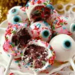 These spooky Eyeball Cake Pops combine rich chocolate cake, creamy homemade buttercream frosting, and a smooth candy coating, all decorated to resemble eerie eyeballs—perfect for Halloween parties, spooky treats, or just some edible fun. I love how easy they are to customize, and despite their creepy look, they’re irresistibly delicious inside.