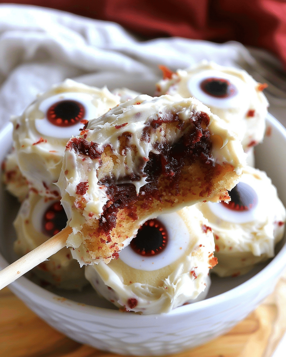 These spooky Eyeball Cake Pops are made with rich chocolate cake, creamy homemade buttercream, and a white candy coating, decorated with colorful irises and bloodshot detailing to resemble eerie eyeballs—perfect for Halloween parties and festive treats.